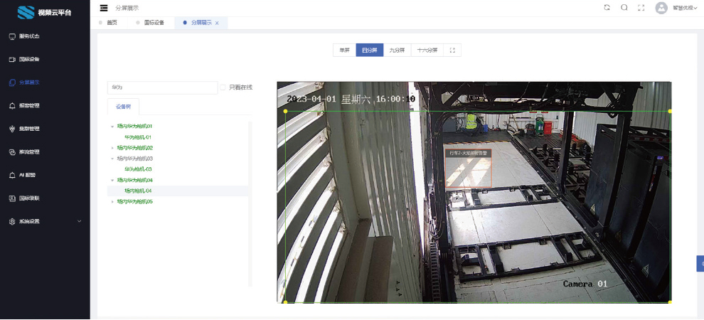| 多畫面顯示 | 用戶可以同時監視多個攝像頭的畫面,以便更全面地監控不同區域,支持分屏后大屏展示。 |